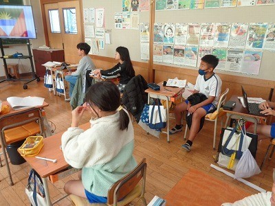 18日の三校合同フェスティバルに向けての準備を行っています。自分たちの出し物の説明をしていました。