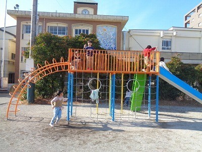 昼休みのようすです。みんなグラウンドで楽しく遊んでいます。