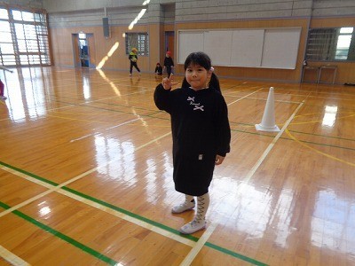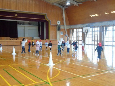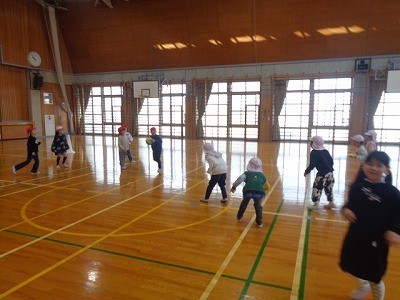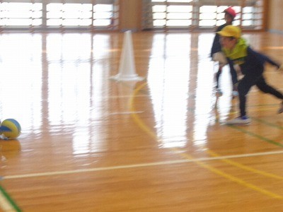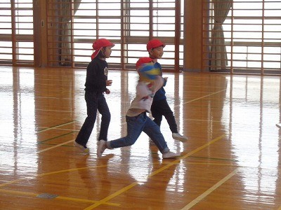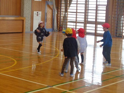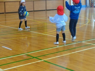 ドッジボールを行っています。ルールを守って、みんなで楽しく行っていました。