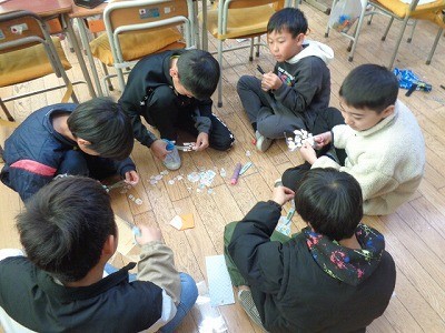 統合フェスティバルの準備を行っています。みんな楽しそうです。