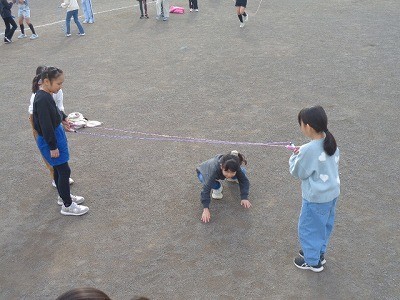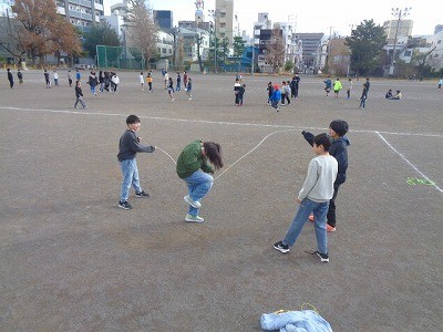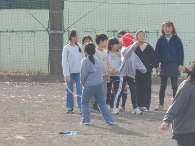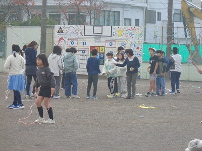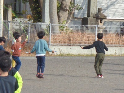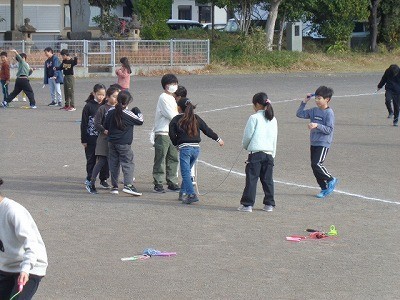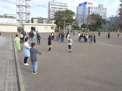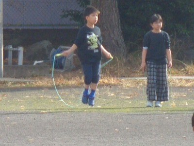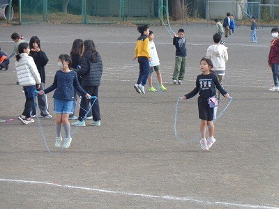 なわとび運動を行っています。今日もいい天気です。