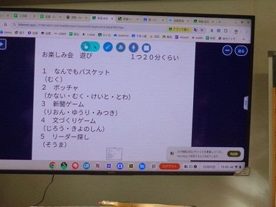 お楽しみ会です。プログラムをみんなで作って、楽しんでいます。