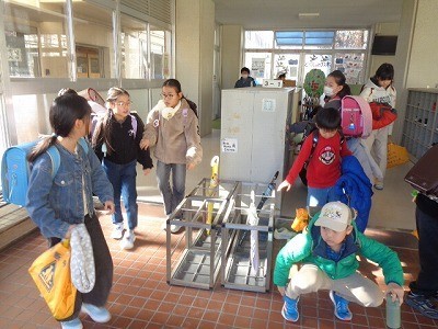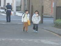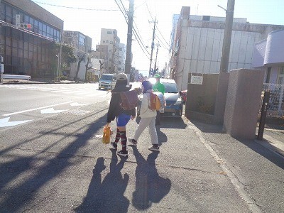 下校のようすです。風邪がすこし強く吹いていましたが、地域の方々に見守られながら、無事下校していきました。