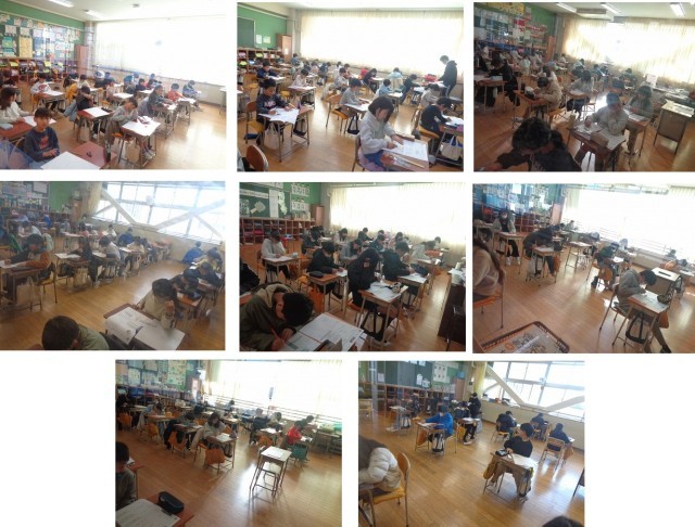 定着度調査を、2時間目に国語、3時間目に算数の教科で行いました。みんな、今まで勉強してきた成果を出そうと一生懸命取り組んでいました。