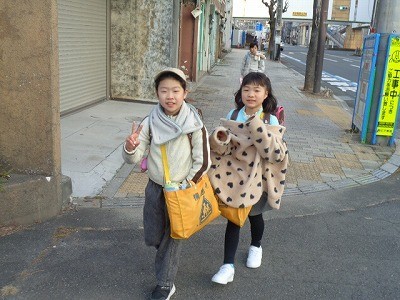 登校のようすです。今日も寒いですが、みんな元気に登校しています。