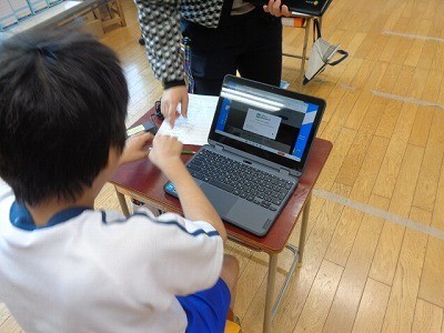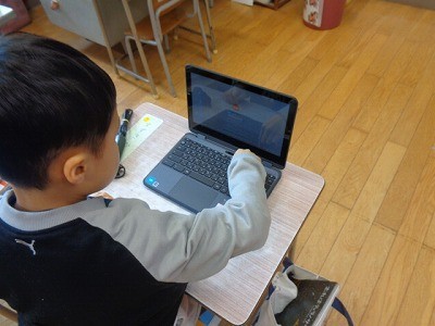 新しいクロームブックになりました。早速、IDとパスワードを入れて起動しています。これから大切に使っていきましょう。