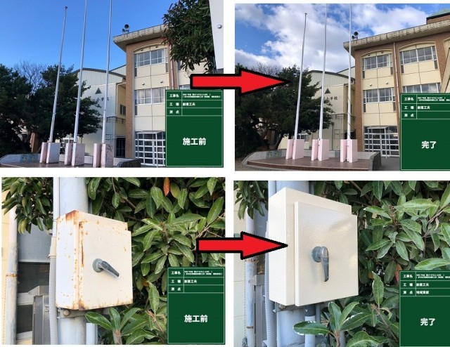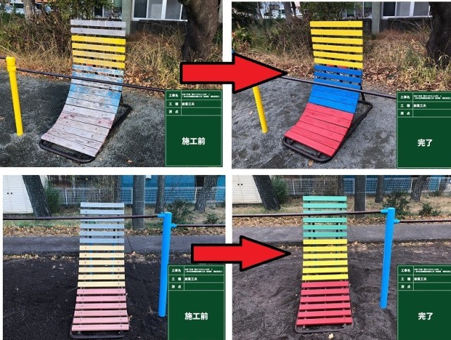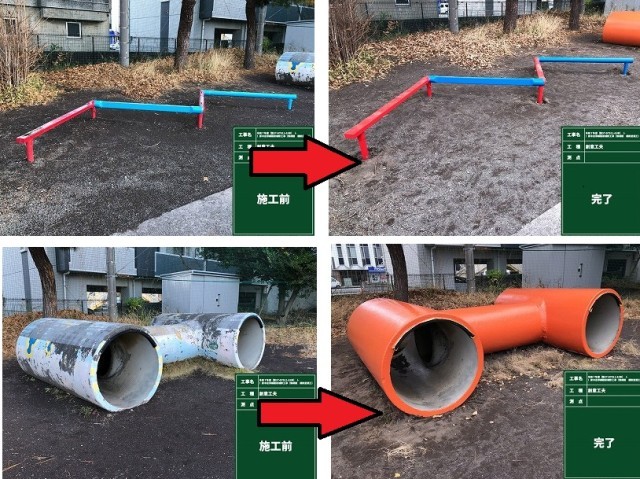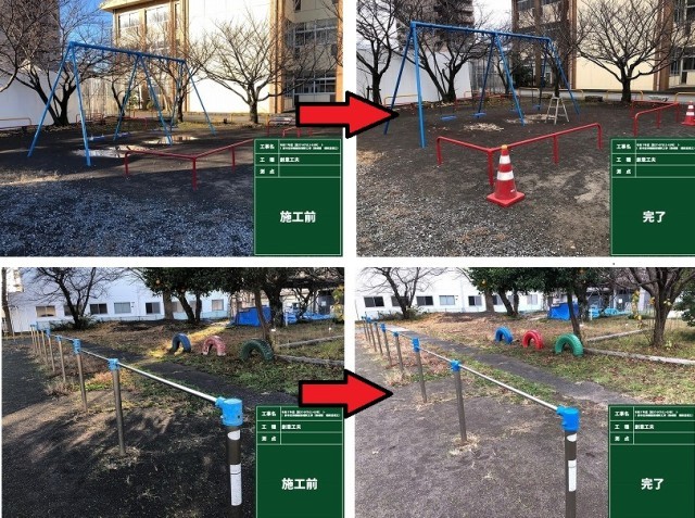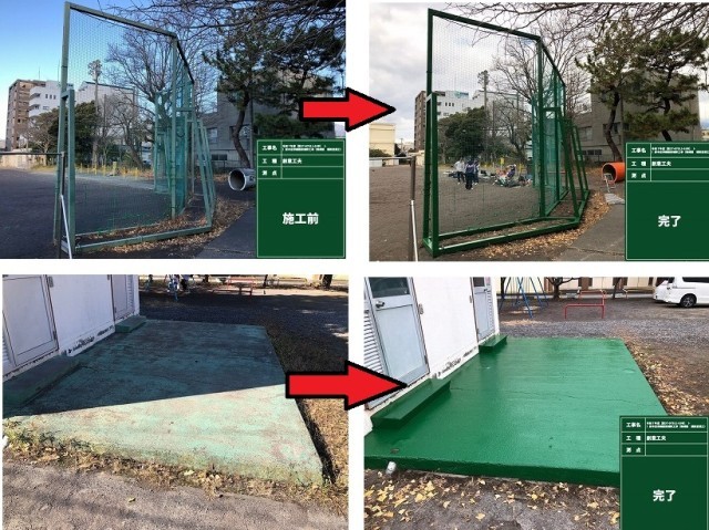 冬休み、御成橋の塗装をしている業者さんが、地域貢献の一環として、ボランティアで、第一小学校のグラウンド周りにある、遊具やバックネット、旗立台などの塗装をしてくださいました。お陰様で、とてもきれいになりました。ありがとうございました。