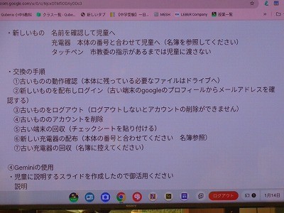 新しいクロームブックの使い方について確認しています。