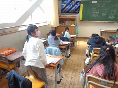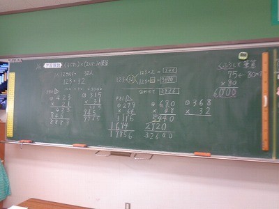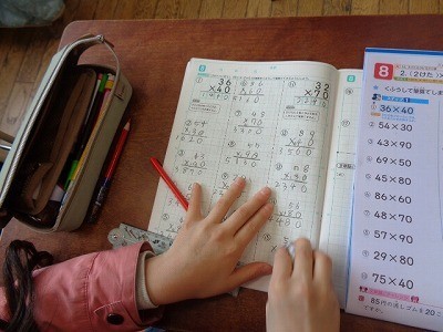 (3ケタ)×(2ケタ)のひっ算の計算練習を行っています。