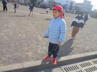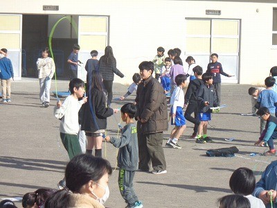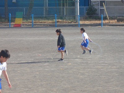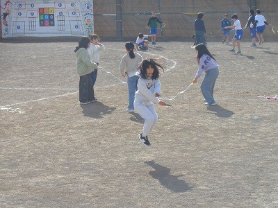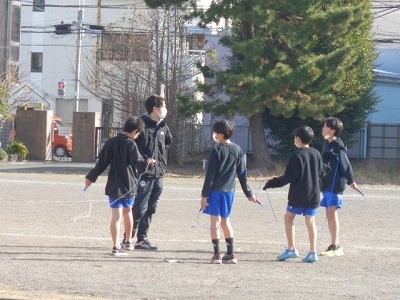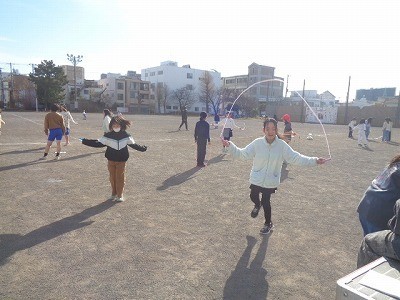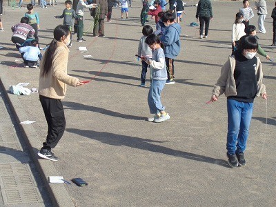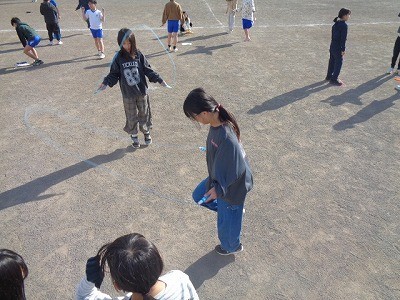 なわとびをみんなで一生懸命行っています。