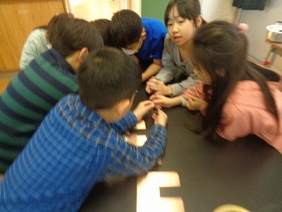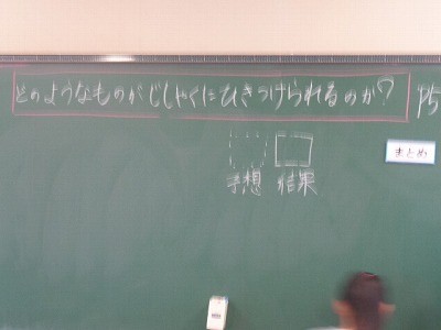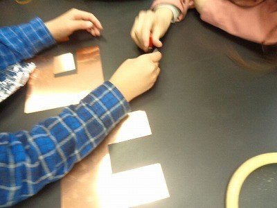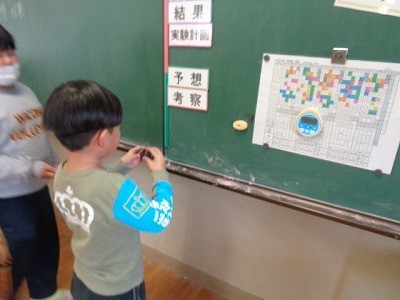 どんなものが磁石に引きつけられるのか、予想をした後、いろいろな物に磁石を近づけて確認しています。
