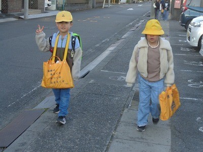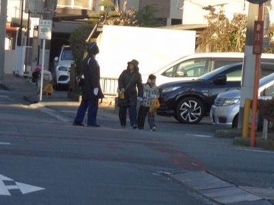 交通安全指導員さんたちに見守られる中、安心して登校していました。ありがとうございます。