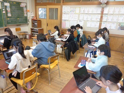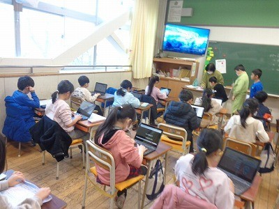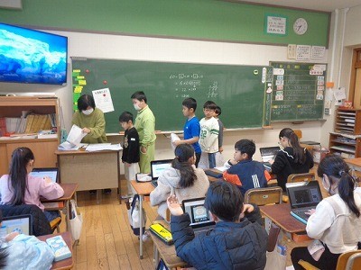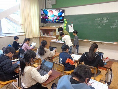 算数の問題を解いています。できた人は、AIドリルでさらに計算の力を付けていました。