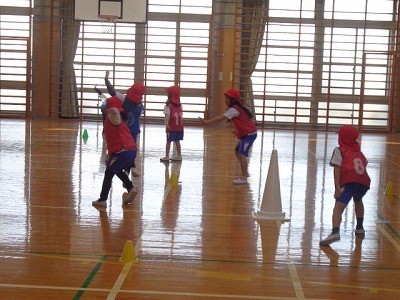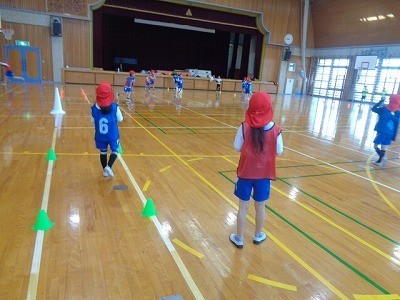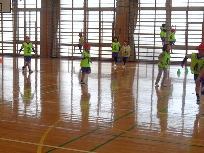 おにごっこを行っています。ルールを守りながら遊んでいました。