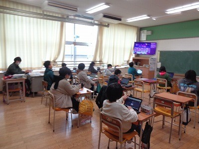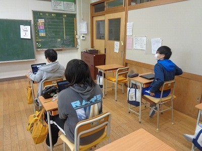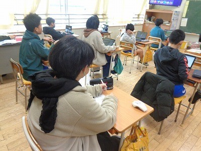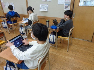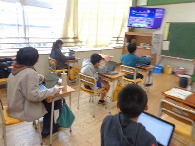 クロームブックを使って、復習をしています。