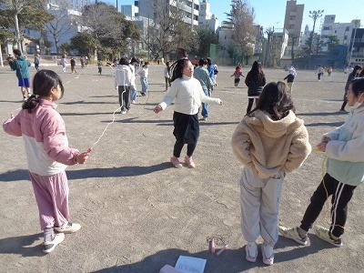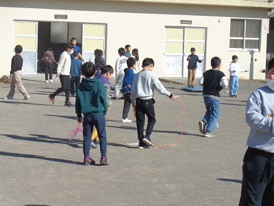 今週でなわとび運動も最後です。みんな、できる限りなわとび技カードを進めようと、一生懸命がんばっています。