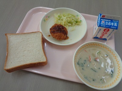(かくがたしょくパン、とんかつ、キャベツソテー、ちゅうのうソース)