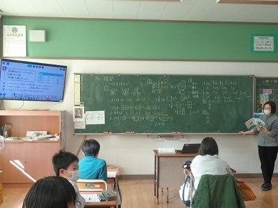 小数があらわしているもの、分数が表しているものは何か、例を示しながら考えていました。