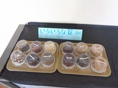 給食室より、お豆についての展示があります。是非御覧ください。