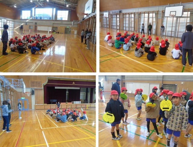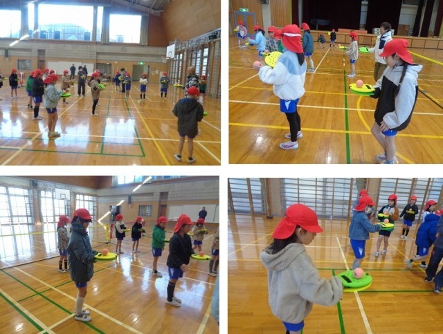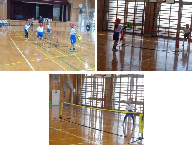 沼津テニス協会の方々に来校していただき、テニピンを行いました。テニピンとは、テニスとピンポンをあわせて、たくさんの人がやりやすいようにしたスポーツです。ラケットやボールも扱いやすく。子供たちは楽しく活動していました。