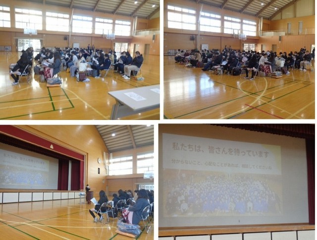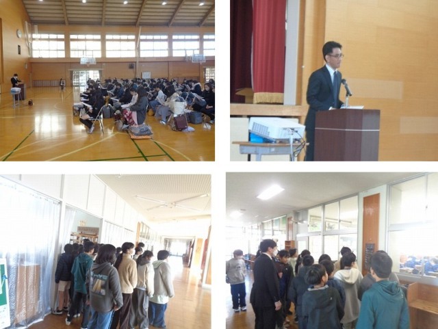 学校長や教務主任、生徒指導主事などの先生から、学校の方針や生活について話を聞いた後、校内を参観しました。その後、部活動見学をして、下校しました。4月からの中学校生活が思い浮かばれてきた子供たちがたくさんいました。