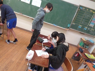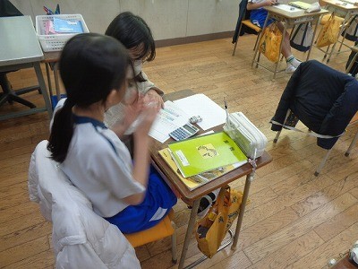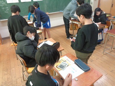 帯グラフについて考えています。分からないところをお互いに教え合っていました。
