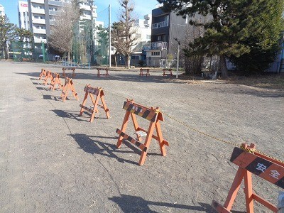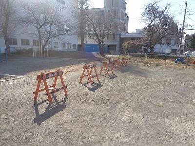 東側の遊具が、今日から使用禁止になりました。子供たちはがっかりしています。少しの間待っていてください。