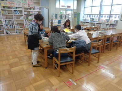 図書館ボランティアさんたちが、本のラミネートや整理をしてくださっています。ありがとうございます。