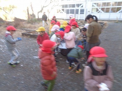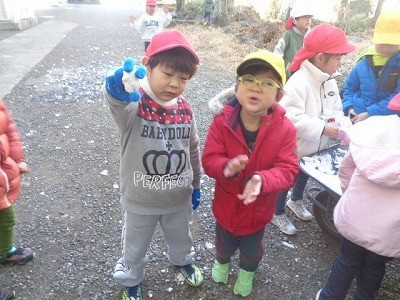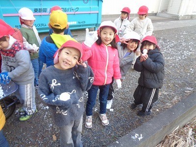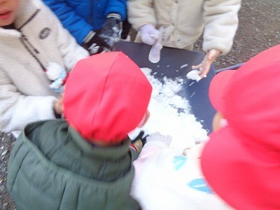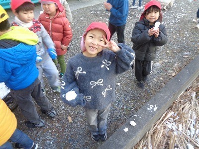 昨日降った雪で遊んでいます。雪だるまをつくったり、雪合戦をしていました。楽しそうですね。