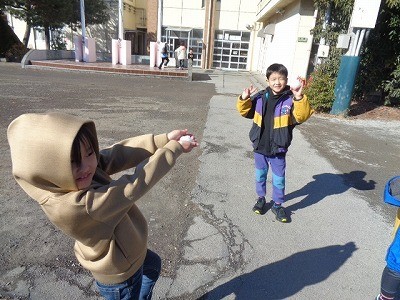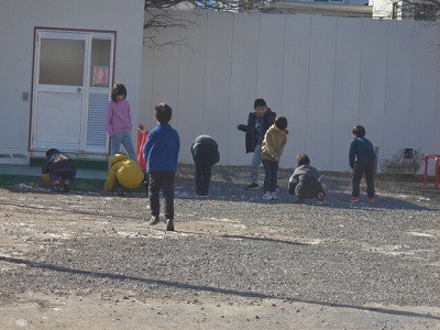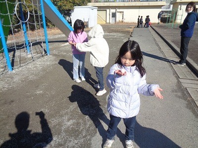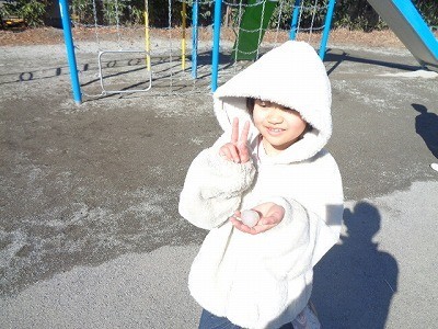 外に出て、雪を探していました。お団子や雪だるまをつくっています。みんなおおはしゃぎです。
