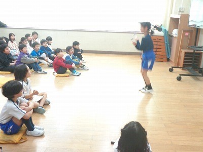 なわとびなどの特技をひろうしたり、音楽で行っている曲を披露したりしました。みんなしっかりとできました。