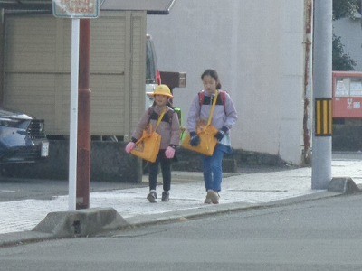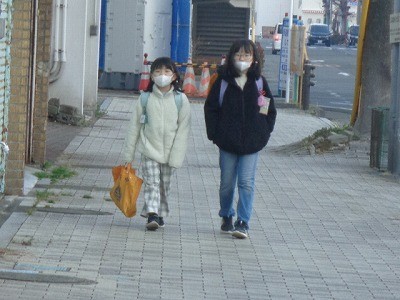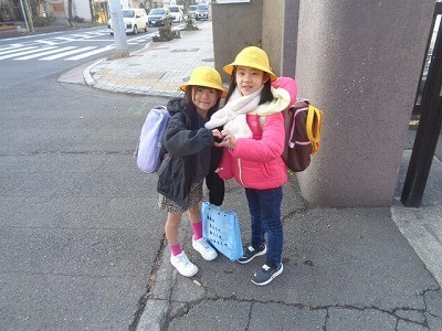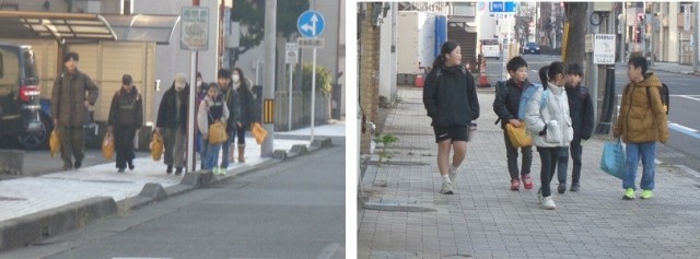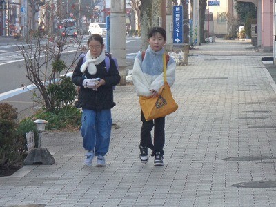登校のようすです。寒い中ですが、元気に登校しています。