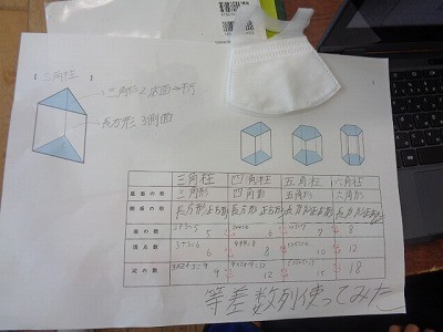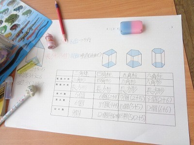 いろいろな多角形のことについて、表にしながらまとめています。