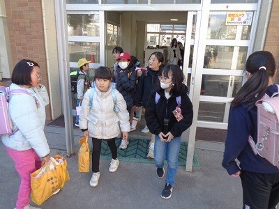 下校のようすです。土日に何をするのか、楽しく過ごす話をしながら下校していきました。