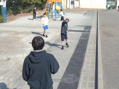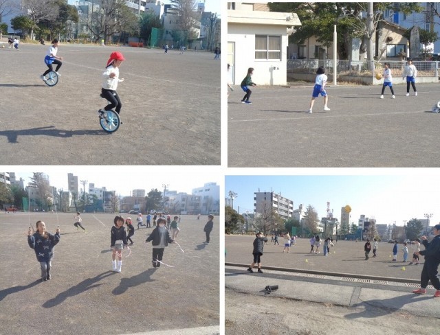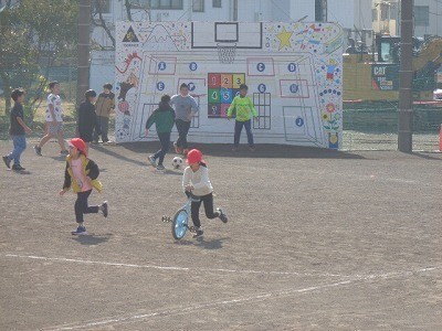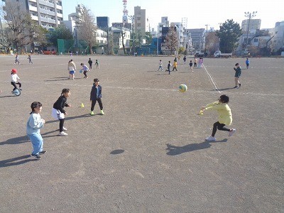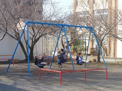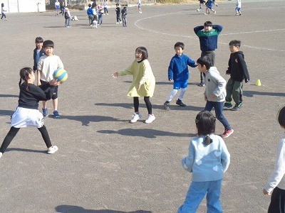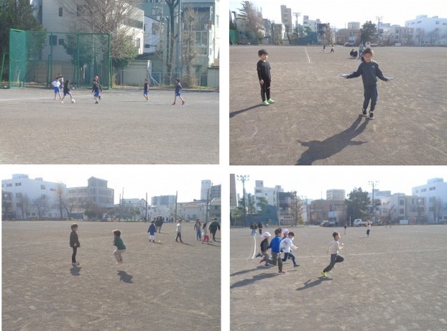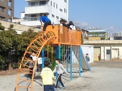 サンタイムのようすです。あたたかい日射しの下、子供たちは楽しく遊んでいます。