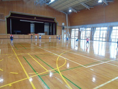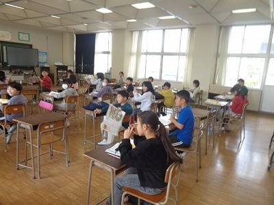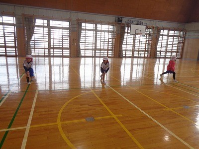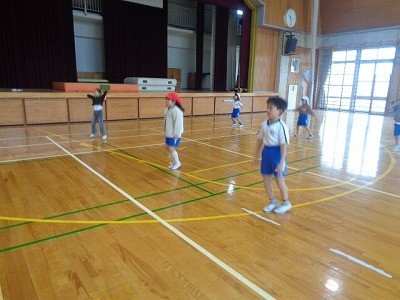 授業のまえの準備運動です。係の子どもが中心となって活動していました。