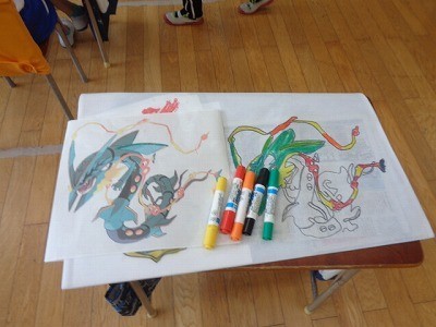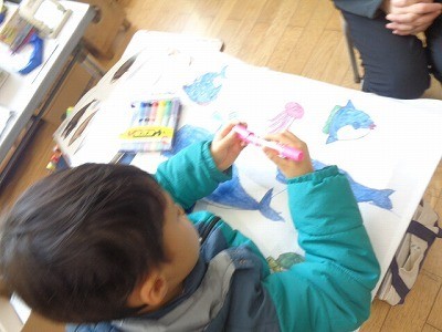 作品バックに絵を描いています。