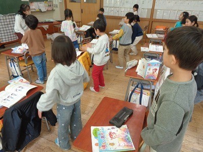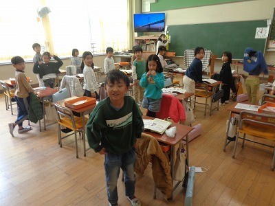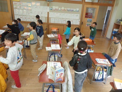 「とんくるりん ぱんくるりん」という曲をリズムに合わせて,踊りながら歌っています。とても楽しそうです。