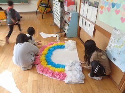 6年生を送る会の準備を行っています。6年生の喜ぶ姿を想像しながら活動していました。