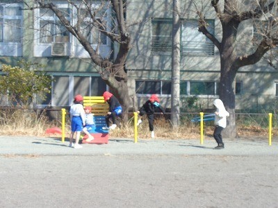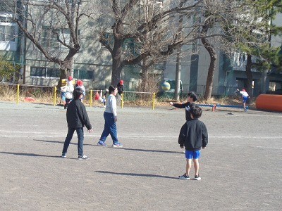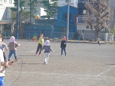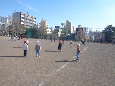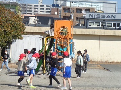 あたたかい日射しの下、みんな楽しく遊んでいます。