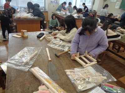 木をつかって、小物をつくっています。テレビがうまくできました。