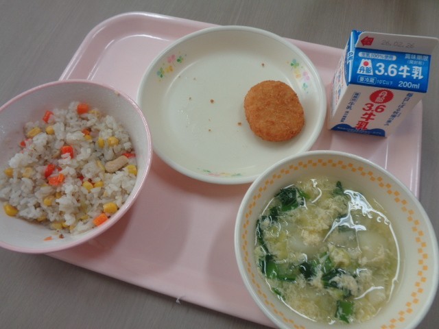 今日は、「だいずコロッケ」について紹介します。コロッケは、フランス料理の「クロケット」からできた日本の料理と言えます。明治文化が広がったころ、日本では洋食が一気に広まりました。その一つがコロッケだったのです。今日は大豆が入ったコロッケです。