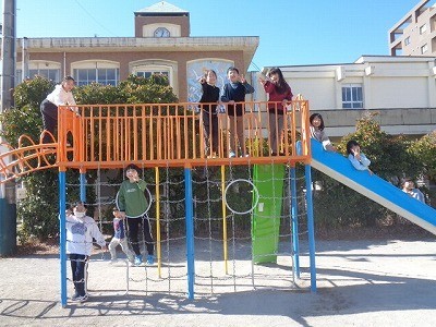 たくさんの子供たちが、あたたかい日射しの下、元気に遊んでいました。
