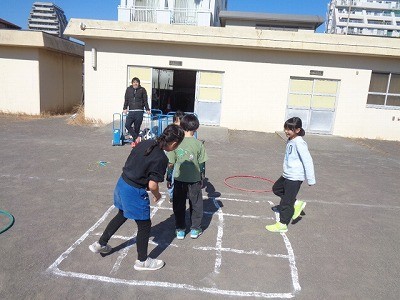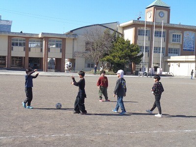 昼休みのようすです。今日は、ロング昼休みのため、35分間遊ぶことができます。