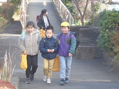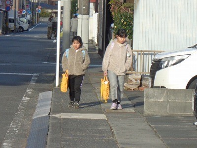登校のようすです。寒い中ですが、みんな元気に登校しています。
