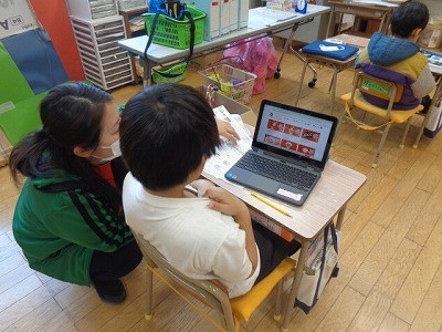 算数の問題を解いています。クロームブックを使いながら考えてる場面も見られました。