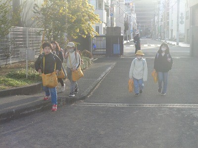 登校のようすです。あたたかくなってきました。子供たちは元気に登校しています。