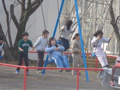 あたたかい日射しの下、子供たちは元気に遊んでいます。