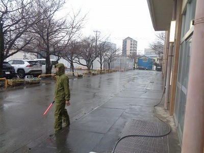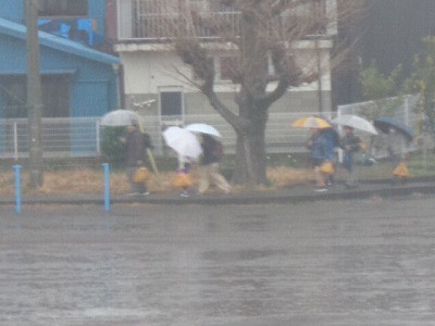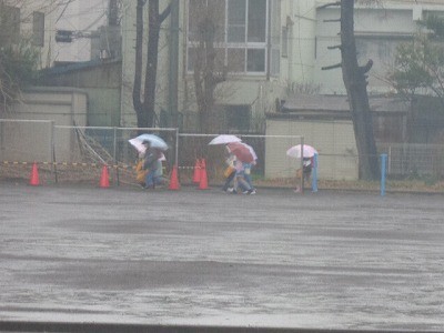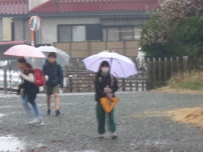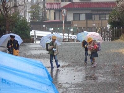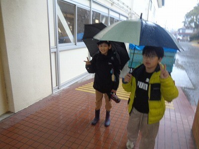 登校のようすです。雨が降っていましたが、お陰様で、みんな無事に登校できました。