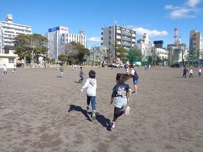 昼休みのようすです。グラウンドが乾いたため、外で元気よく、楽しそうに遊んでいます。